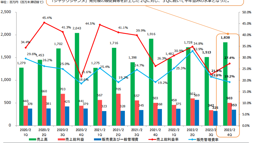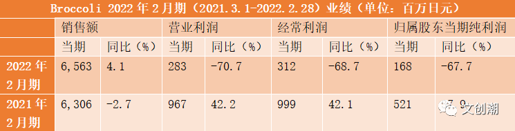 營業(yè)利潤2.83億日元,同比減少70.7%;經(jīng)常利潤3.12億日元,同比減少68.7%;歸屬股東當(dāng)期純利潤67.7%,同比減少67.7%。與去年各項(xiàng)利潤穩(wěn)中有升的情況相比,2022財(cái)年的Broccoli仿佛遭遇了滑鐵盧。
