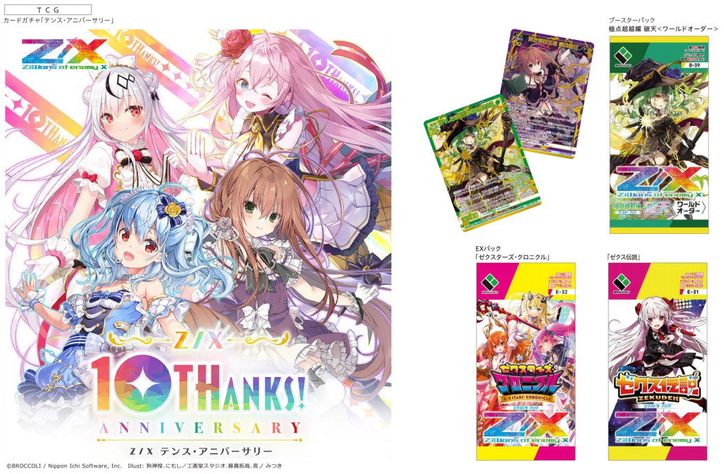 TCG(集換式卡牌)方面,借著10月發(fā)售大獲好評(píng)的《極點(diǎn)超越編 無限unlimited boost》的東風(fēng),Broccoli發(fā)售10周年的《Z/X -Zillions of enemy X-》在11月開始接受新卡包郵購預(yù)定。新卡包《Tense·anniversary》大受歡迎,成功將銷量、銷售額拉回去年水平。