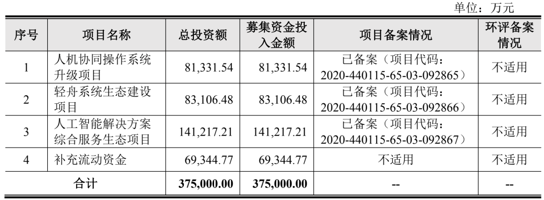 云從科技本次IPO募資將主要用于人機(jī)協(xié)同操作系統(tǒng)升級(jí)項(xiàng)目、輕舟系統(tǒng)生態(tài)建設(shè)項(xiàng)目、人工智能解決方案綜合服務(wù)生態(tài)項(xiàng)目以及用于補(bǔ)充流動(dòng)資金。