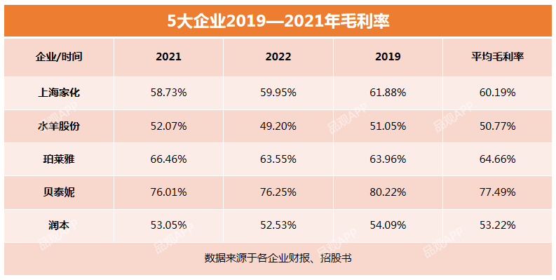 在毛利率方面,潤(rùn)本低于一眾美妝上市企業(yè)。期內(nèi),其三年平均毛利率為53.22%,而珀萊雅、上海家化、貝泰妮的三年平均毛利率均超60%,其中,貝泰妮的平均毛利率更是達(dá)到77.49%。