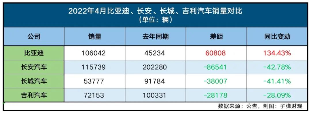 同時(shí),他也表示,“今年比亞迪表現(xiàn)出了很好的增長(zhǎng),但這其中一個(gè)原因是比亞迪2021年同期的銷(xiāo)量基數(shù)相對(duì)其它幾家比較小,所以它會(huì)有比較大的漲幅。就拿今年4月份的銷(xiāo)量數(shù)據(jù)來(lái)說(shuō),雖然比亞迪銷(xiāo)量達(dá)到10萬(wàn)輛,同比增長(zhǎng)超一倍,但仍然沒(méi)有同期銷(xiāo)量大幅下滑的長(zhǎng)安汽車(chē)多,也才達(dá)到2021年4月時(shí)吉利汽車(chē)和長(zhǎng)城汽車(chē)差不多的銷(xiāo)量水平?!?/p>