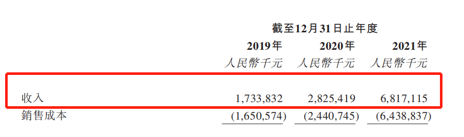 《招股書》顯示,2019年-2021年,中創(chuàng)新航分別實現(xiàn)營業(yè)收入17.34億元、28.25億元、68.17億元,年復(fù)合增長率高達98.28%。