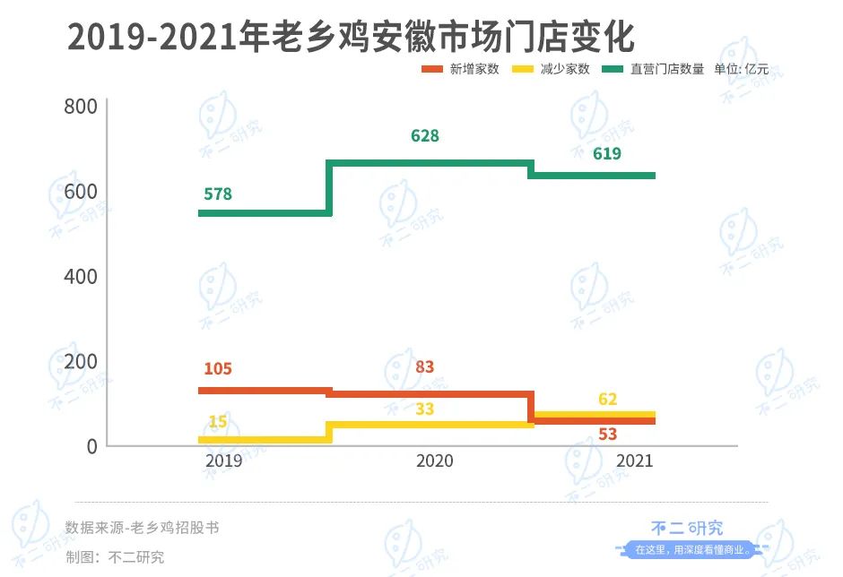 但在大本營安徽,老鄉(xiāng)雞的門店數(shù)量已經(jīng)開始收縮。招股書顯示,2021年安徽市場直營門店凈增數(shù)已經(jīng)由正轉(zhuǎn)負(fù),凈關(guān)9家門店。