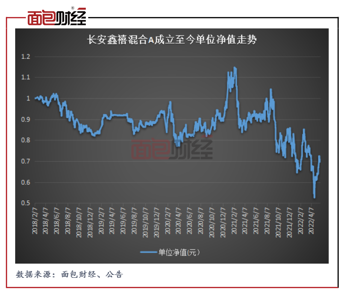 成立至今(截至5月29日),長安鑫禧混合A份額單位凈值收益率為-30.31%,期間最大回撤達54.1%,單位凈值最低下探至0.53元。