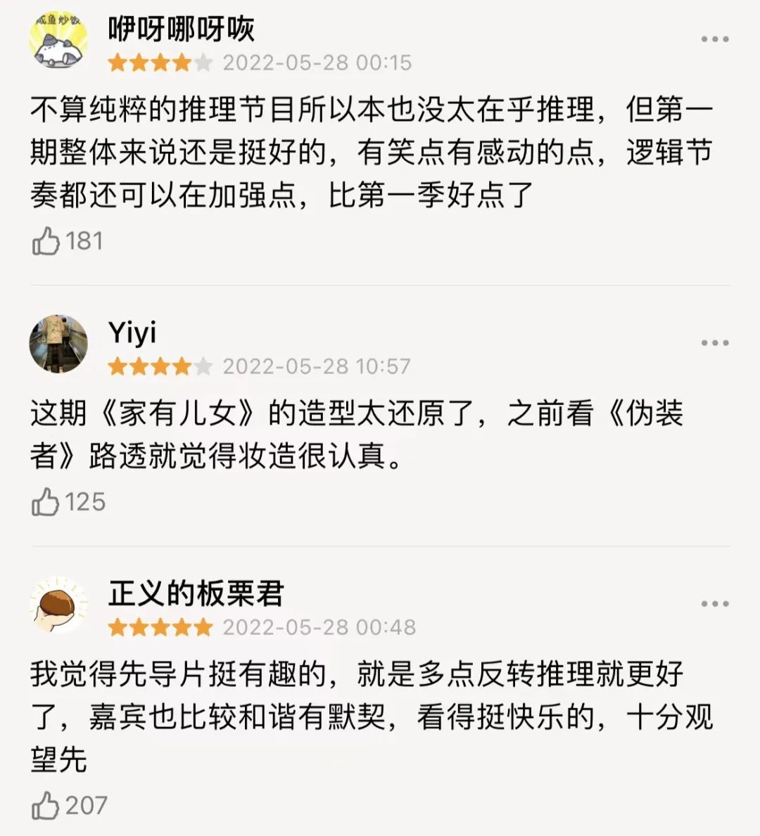 “誰能不愛這種充滿回憶殺的節(jié)目”、“有笑點有淚點有正能量很適合解壓”、“出乎意料的好看,場景和推理設(shè)計挺用心,劇情再緊湊點就完美了”,從觀眾對《萌探2》的評價不難看出,好內(nèi)容依然是市場的不二之選。