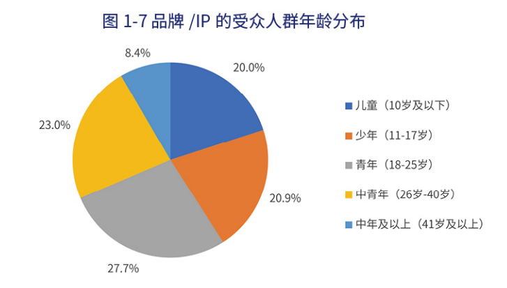 品牌及IP的受眾人群方面,仍然以青少年(18-25歲)為主,占比27.7%,這類人群是國潮、動漫、影綜等IP的主要目標群體;