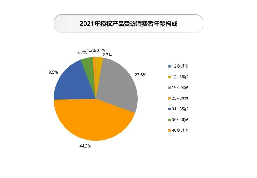 95后群體成為授權產(chǎn)品的主要消費者。購買授權產(chǎn)品的受訪消費者年齡主要集中在25-30歲,占比為44.2%;其次是19-24歲,占比27.6%。