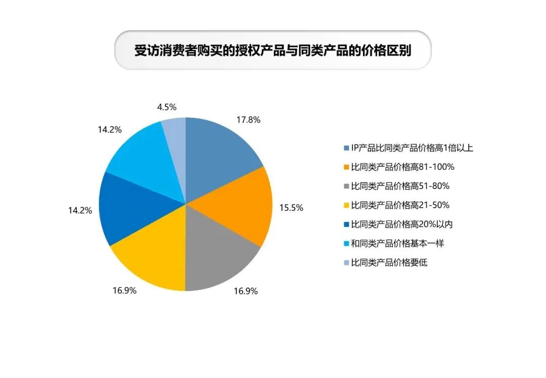 購買授權產(chǎn)品的消費者調(diào)研結果顯示,IP授權對產(chǎn)品的溢價作用明顯。