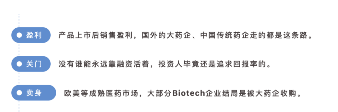昂闊醫(yī)藥聯(lián)合創(chuàng)始人和首席商務官Andy Fu同樣曾指出,在一個成熟的生態(tài)環(huán)境里,Biotech企業(yè)的出路可以簡單劃分為三條。