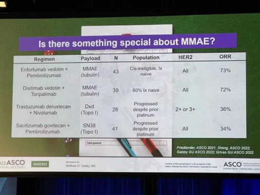 從現(xiàn)場披露的PPT內(nèi)容來看,維迪西妥單抗聯(lián)合PD-1數(shù)據(jù)表明,尿路上皮癌患者無論在治療線數(shù)、HER2和PD-L1表達狀態(tài)的情況下,均能從中獲益。此外,維迪西妥單抗無論在HER2高表達還是低表達尿路上皮癌治療領域,數(shù)據(jù)結(jié)果都超越了晚期尿路上皮癌既有治療藥物的療效。