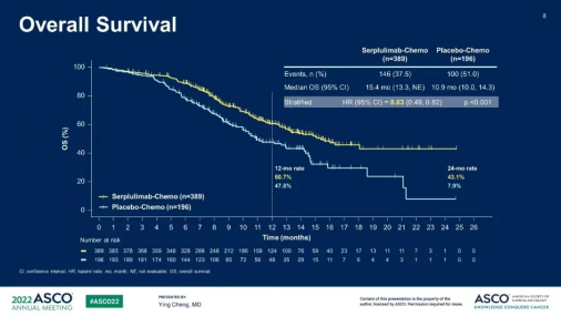 程穎教授表示,在H藥的國際多中心臨床研究中,全球114個研究中心的受試者參加了篩選,入組了超過31.5%高加索人種。研究結(jié)果顯示,斯魯利單抗聯(lián)合化療一線治療廣泛期小細胞肺癌的中位總生存為15.4個月。