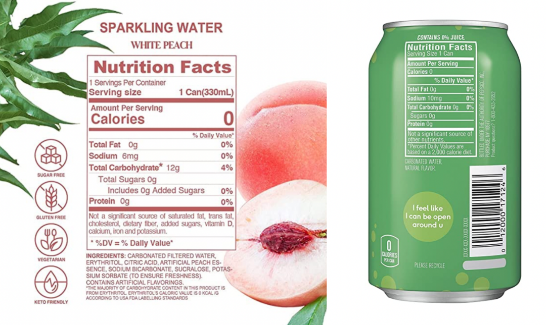 品牌屬性和來源之外,美國本土消費者對產品成分的詰問也從未停止。在瓶身產品說明書上號稱0卡的氣泡水,為何還會含有12克的碳水化合物,而同為競品的百事旗下的Bubly,就能做到0糖、0脂、0卡。