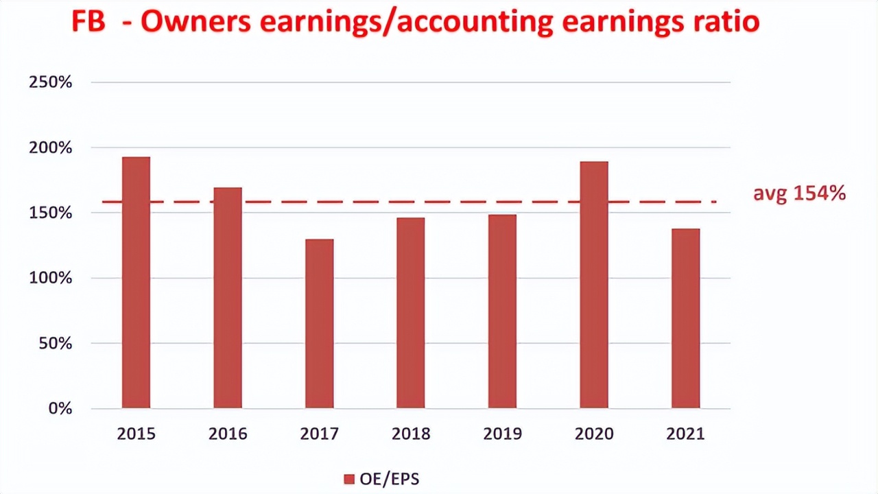 FB 的 OE 顯著高于其 FCF 和 EPS。如前所述,其自由現(xiàn)金流平均占其收益的 121%。