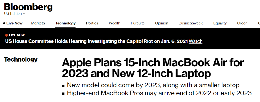 據(jù)彭博社報(bào)道,蘋(píng)果可能會(huì)推出15英寸的“史上最大”MacBook Air,同時(shí)蘋(píng)果還在開(kāi)發(fā)一款12英寸MacBook系列產(chǎn)品,“復(fù)活”初代MacBook Air。當(dāng)然,M2系列的新成員M2 Pro和M2 Max也會(huì)與新款MacBook Pro一并到來(lái)。