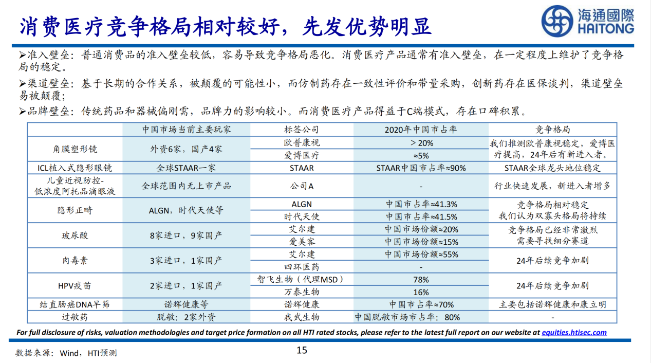 1.消費醫(yī)療競爭格局相對較好,先發(fā)優(yōu)勢明顯
