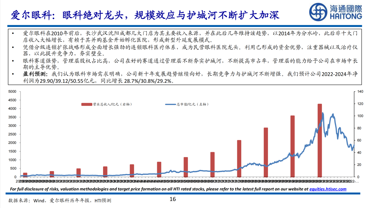 1.愛爾眼科:眼科絕對龍頭,規(guī)模效應(yīng)與護城河不斷擴大加深