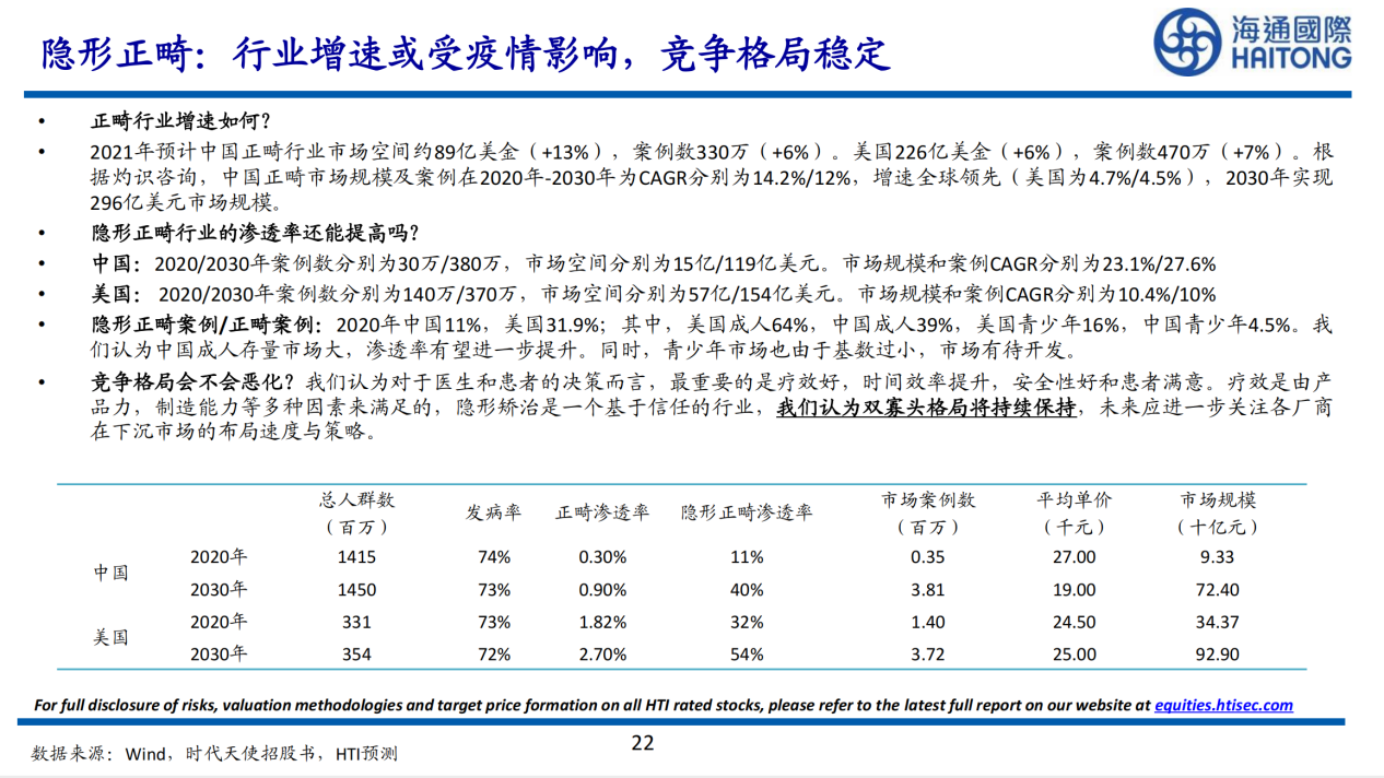 7.隱形正畸:行業(yè)增速或受疫情影響,競爭格局穩(wěn)定