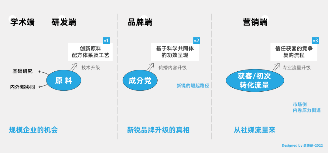 今天的品牌要講更多的專業(yè)內(nèi)容,要求營(yíng)銷內(nèi)容真實(shí)有效、言之有物。所以這才倒逼著品牌們要回到研發(fā)端,從原料技術(shù)的升級(jí)來更新營(yíng)銷內(nèi)容。這個(gè)鏈條是今天新銳品牌升級(jí)的背后邏輯。