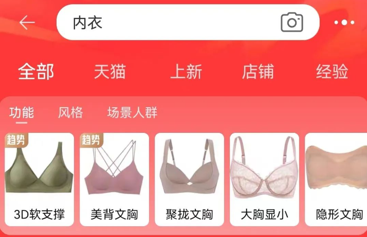 打開淘寶搜索內(nèi)衣,莫蘭迪配色占據(jù)了大半個頁面,而讓品牌興奮推廣的新品類和產(chǎn)品賣點,幾乎每個店鋪都有相應(yīng)滿足條件的同款,而在基本款式固定的條件下,細微的改動帶給消費者的體驗并不明顯,更別提成為消費者心中的獨一無二。