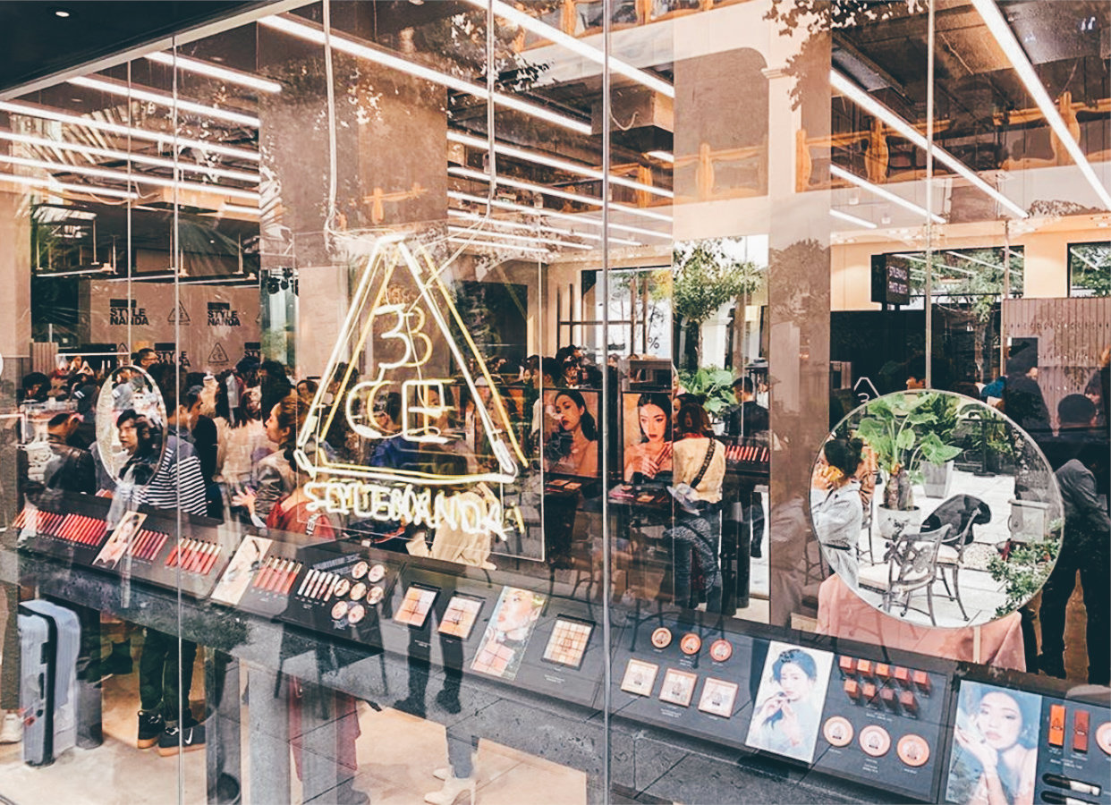 從3CE STYLENANDA的發(fā)展軌跡來看,其在線下更傾向于在城市核心商圈內(nèi)開設(shè)規(guī)模較大的旗艦店。服裝通常能比彩妝更直白地展現(xiàn)出品牌風(fēng)格和特色,大店則能為消費(fèi)者提供更充足的體驗(yàn),進(jìn)而鞏固對品牌的忠誠度。