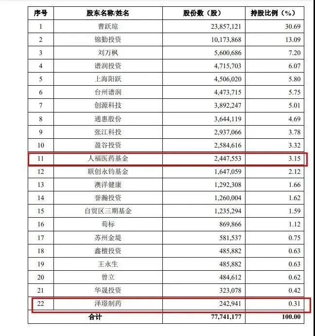 2021年,上海吉凱基因醫(yī)學科技股份有限公司(以下簡稱“吉凱基因”)IPO前,澤璟制藥(688266.SH)持股0.31%,位列第22名股東。