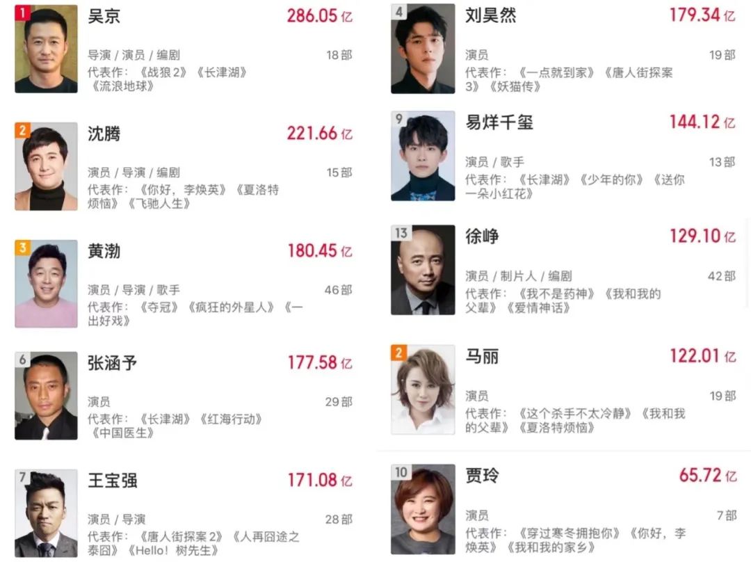 這真是個(gè)誤會(huì)。因?yàn)樵谥袊?guó)電影圈,本身能抗票房的演員就很少。而且他們很少以電影咖自居標(biāo)榜,甚至很多也是知名的綜藝咖,比如沈騰、馬麗、賈玲。還有同樣是“喜劇派”演員的黃渤、徐崢、王寶強(qiáng)、葛優(yōu),以及“主旋律派”吳京、張涵予等。