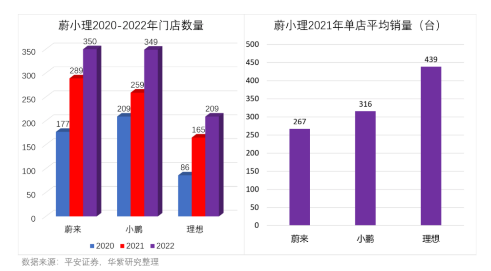 據(jù)華紫研究院數(shù)據(jù),2021年,理想單店整車平均銷量已經(jīng)達(dá)到439臺(tái),是排名第二的小鵬316臺(tái)的1.39倍。