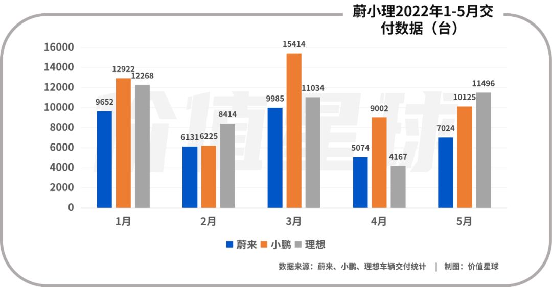 而從5月份的交付數(shù)據(jù)來看,蔚小理分別較4月有38%、12%和176%的環(huán)比增幅,似乎產(chǎn)能的問題隨著疫情的緩解也都得到了解決。