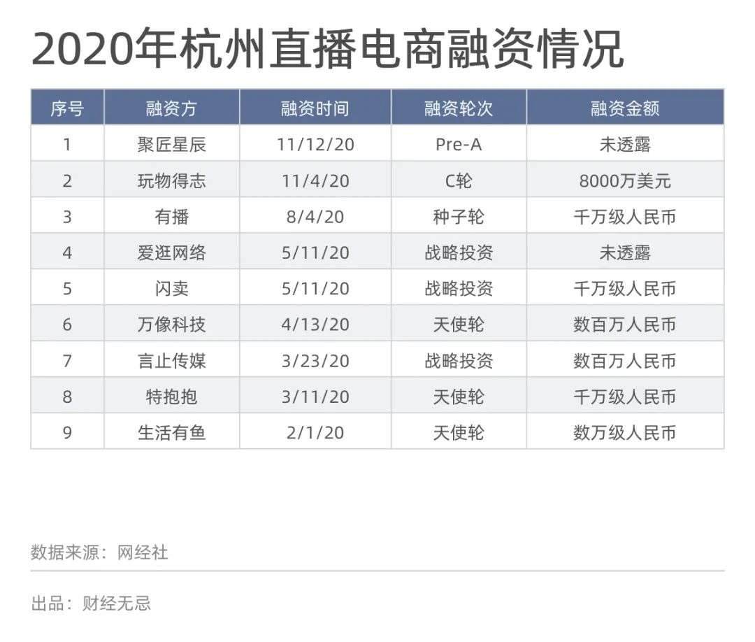 資本也嗅到了機(jī)遇。數(shù)據(jù)顯示, 2020年中國(guó)直播電商領(lǐng)域共有23家平臺(tái)獲得融資,融資總額超11.7億元,杭州占據(jù)了一半。 聚匠星辰、特抱抱、萬(wàn)像科技等直播電商機(jī)構(gòu)背后站著的是小米科技、梅花創(chuàng)投等明星資本。
