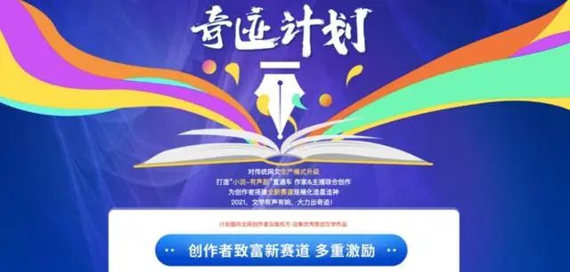 與當(dāng)期各大平臺的微短劇創(chuàng)作者招募計劃如出一轍,“奇跡計劃”主要將目光鎖定在扶持網(wǎng)文內(nèi)容創(chuàng)作者,鼓勵作者創(chuàng)作出更多適合有聲改編的原創(chuàng)內(nèi)容,并且通過全方位服務(wù),加快助力創(chuàng)作者內(nèi)容變現(xiàn)。