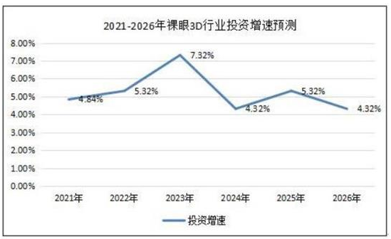 據(jù)相關(guān)機(jī)構(gòu)預(yù)測(cè),2022年裸眼3D行業(yè)投資增速為5.32%。2023年將達(dá)7.32%。