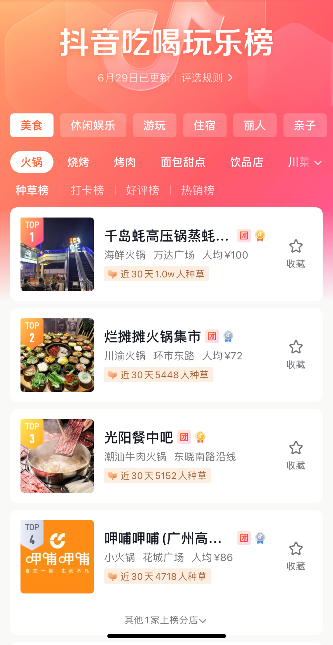 目前,抖音頁面的一級入口為關(guān)注、推薦、同城,同城中細(xì)分為美食、休閑娛樂、景點(diǎn)/周邊游、麗人/美發(fā)、親子/樂園五大板塊的二級入口,點(diǎn)進(jìn)去有“限時(shí)秒殺”、“優(yōu)惠團(tuán)購”、“熱門榜單”等業(yè)務(wù)。