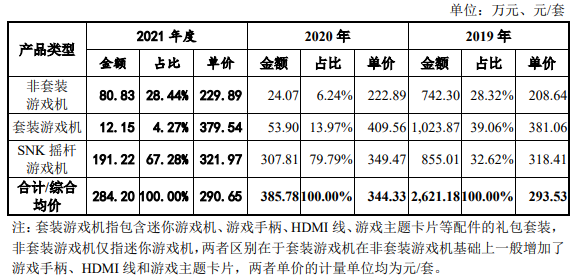 “迷你游戲機產(chǎn)品主要為復(fù)古型游戲機,該類產(chǎn)品受市場環(huán)境及玩家偏好程度影響,需求變動較快,產(chǎn)品生命周期較短,市場需求在集中釋放后逐步減少”。