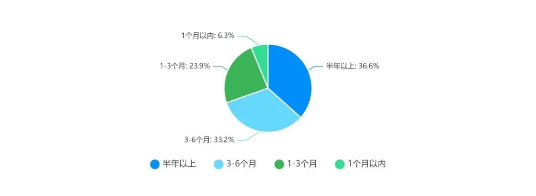 庫存方面。有9成商家?guī)齑嬖?個月以上。其中,36.6%的商家?guī)齑娓哌_半年以上,33.2%的商家?guī)齑嬖?-6個月,23.9%的商家?guī)齑嬖?-3個月,僅6.3%的商家?guī)齑嬖谝粋€月之內(nèi)。