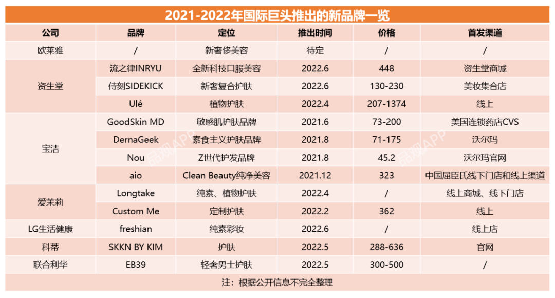 整體來看,寶潔、資生堂近兩年推新品牌的動作最為頻繁。