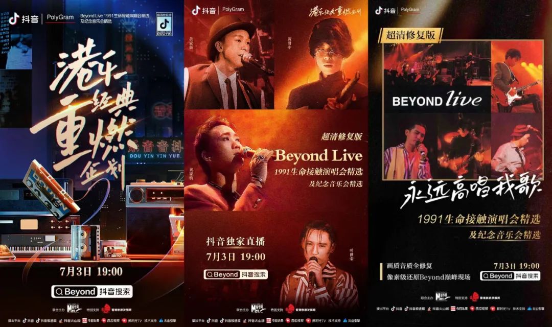 7月3日晚,香港搖滾傳奇樂隊Beyond高清修復演唱會在抖音開演,跨時空呈現(xiàn)了31年前1991年生命接觸演唱會的精選片段,幾代人的青春記憶被超清修復,兩小時內就聚集了1.3億人次在直播間為黃家駒“哭干眼淚”。