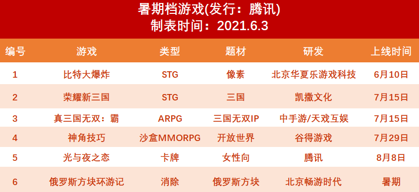 2021年6月,騰訊發(fā)布了6款暑期檔游戲、網(wǎng)易公布了16款游戲更新,其中包括《遇見逆水寒》和《孤島先鋒》兩款全新游戲。完美世界發(fā)布了旗下的兩款大IP游戲《夢(mèng)幻新誅仙》和《真三國(guó)無雙霸》。