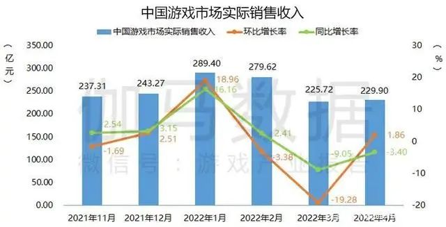 整個(gè)游戲市場(chǎng)正處在衰退當(dāng)中,伽馬數(shù)據(jù)發(fā)布的報(bào)告顯示,2022年3月國(guó)內(nèi)游戲市場(chǎng)實(shí)際銷售收入同比下降9.05%,4月同比下降3.40%;游戲市場(chǎng)用戶規(guī)模減小,中國(guó)游戲用戶規(guī)模3月同比下降0.04%,4月同比下降0.01%。
