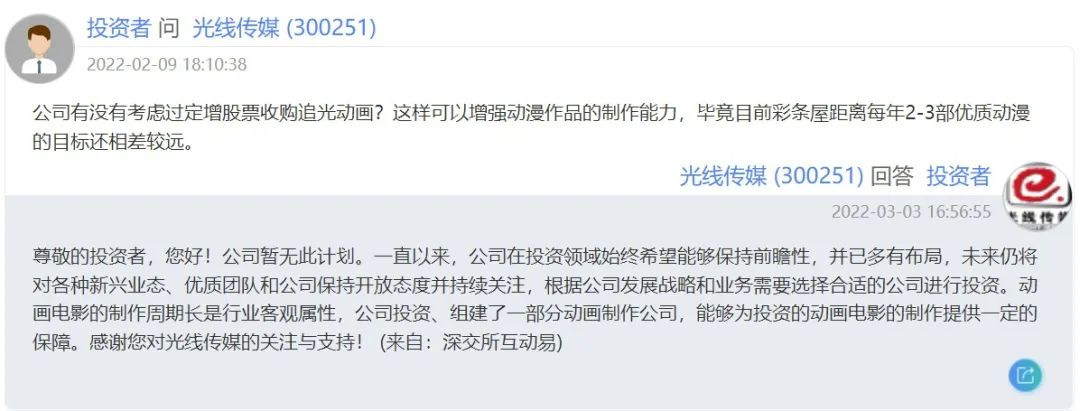 光線傳媒(300251.SZ)回應(yīng):