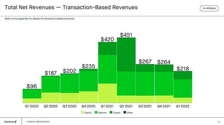 Robinhood的加密相關(guān)收入在過去幾個(gè)季度中急劇下降(圖源:羅賓漢)