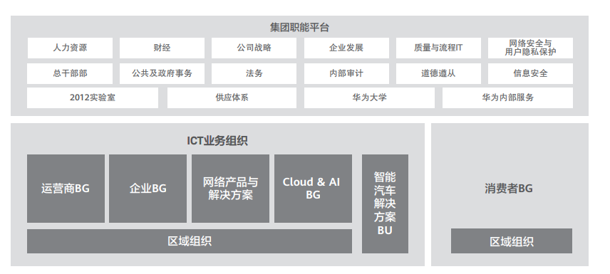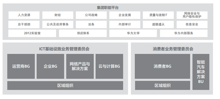 華為內(nèi)部有兩大業(yè)務(wù)管理委員會,分別為ICT基礎(chǔ)設(shè)施業(yè)務(wù)管理委員會和消費者業(yè)務(wù)管理委員會。是負責業(yè)務(wù)戰(zhàn)略、經(jīng)營管理和客戶滿意度的責任機構(gòu)。