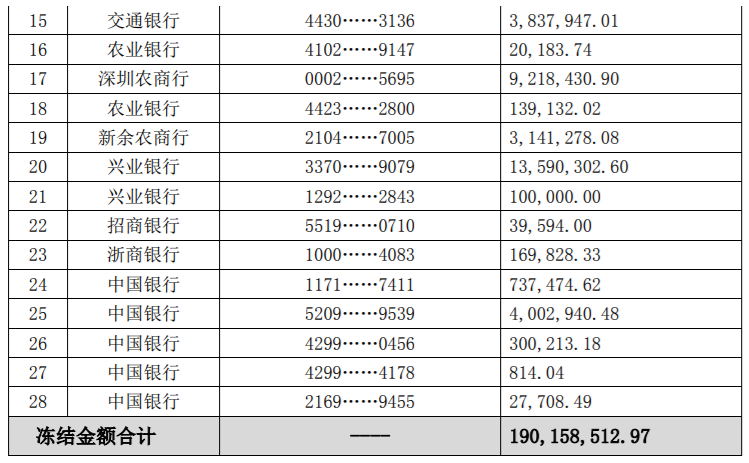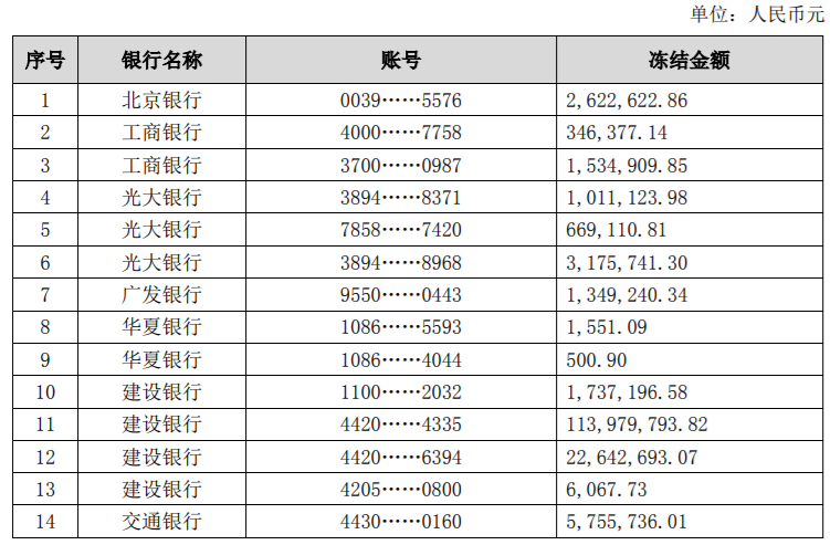 7月7日,奇信股份公告了回復(fù)問詢函。截至目前,其被凍結(jié)銀行賬戶28個,凍結(jié)金額1.9億元。