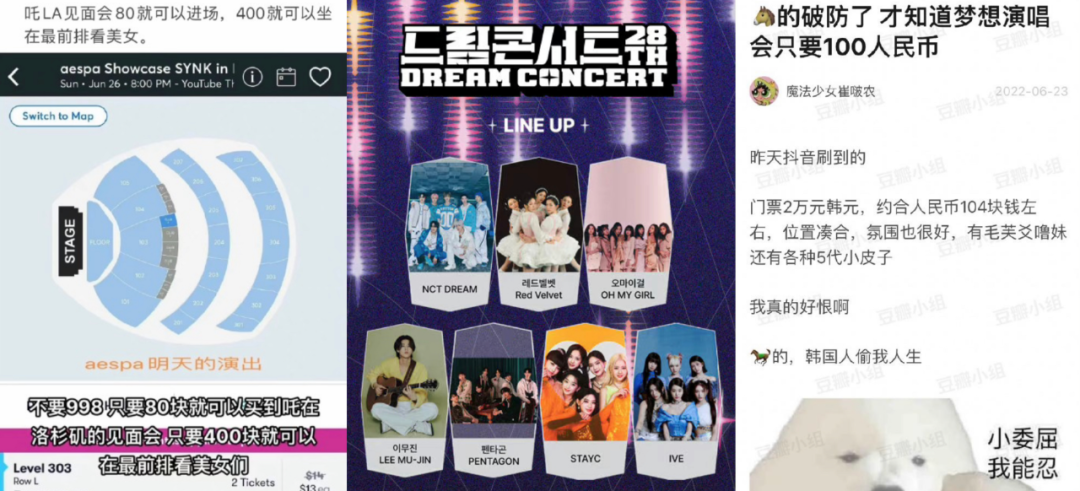 要知道,前段時間國外演唱會剛剛因“白菜價”被熱議過,6月份韓國TOP級男女團拼盤演出“夢想演唱會”門票折合人民幣才104元,SM當(dāng)家女團吒(aespa)在美國洛杉磯的見面會只需80塊就能入場。與之相比,內(nèi)娛連個獨立音樂人拼盤音樂節(jié)都動輒五百上千,這真的合理嗎?