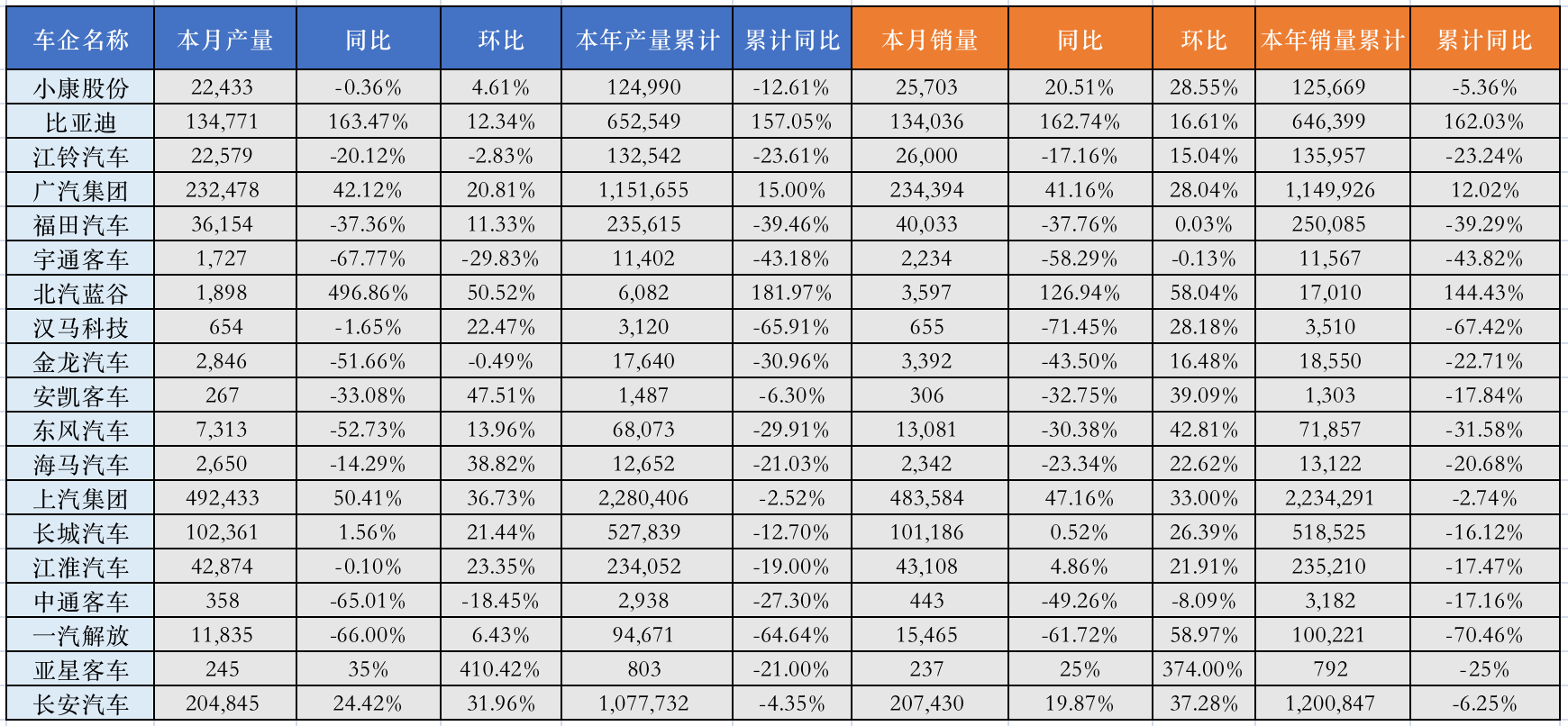 新能源汽車(chē)方面,比亞迪、福田汽車(chē)(600166.SH)、小康股份(601127.SH)、廣汽集團(tuán)、長(zhǎng)安汽車(chē)(000625.SZ)等企業(yè)新能源汽車(chē)銷(xiāo)量均呈上揚(yáng)。