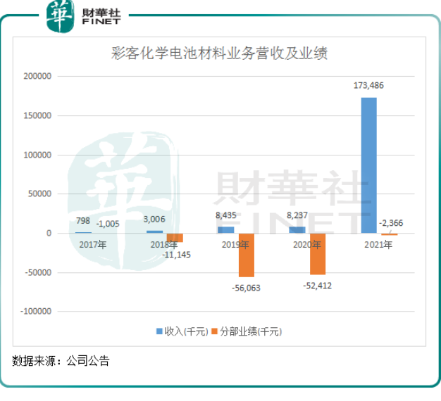 具體而言,在2017年-2020年期間,彩客化學的新能源材料業(yè)務的發(fā)展近乎停滯不前。