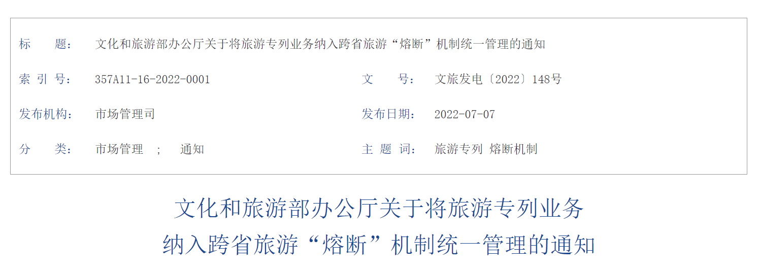 5月31日,文化和旅游部辦公廳發(fā)布《關于加強疫情防控科學精準實施跨省旅游“熔斷”機制的通知》,另附第四版《旅行社新冠肺炎疫情防控工作指南》,其中首次將跨省游“熔斷”政策的行政單位從省(區(qū)、市),調(diào)整為縣(市、區(qū)、旗),以及直轄市的區(qū)(縣)。