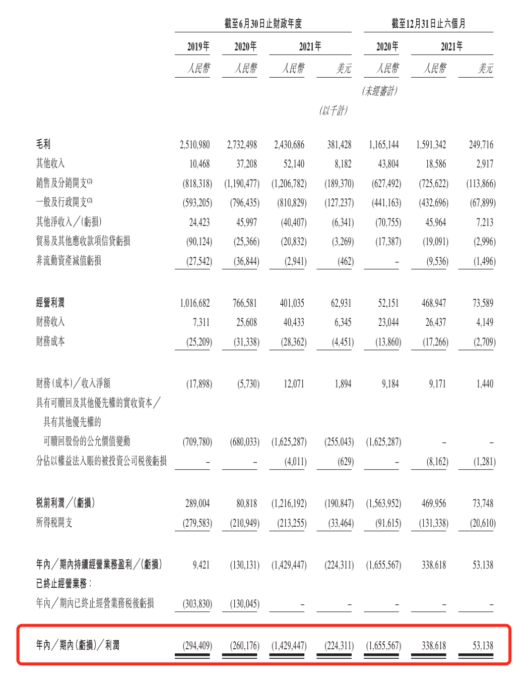 《招股書》還顯示,截至2019年、2020年以及2021年6月30日止的三個(gè)財(cái)政年度,名創(chuàng)優(yōu)品分別虧損2.94億元、2.6億元及14.29億元,三年來合計(jì)虧損達(dá)到19.83億元。