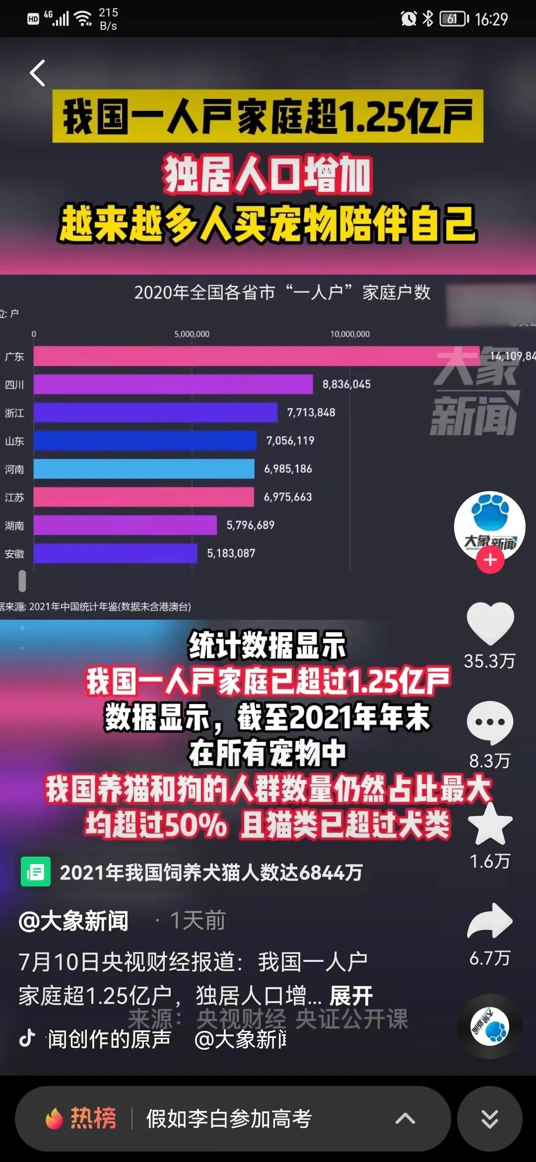 中國(guó)人自古以來(lái)一直把“狗”視作忠心伙伴,“狗不嫌家貧”的俗語(yǔ)足以證明中國(guó)人對(duì)狗的信任。相比之下,貓既高冷又記仇,還常常會(huì)離家出走,因此在民間的人氣長(zhǎng)期位于狗之下。不過(guò)7月初,一則#我國(guó)養(yǎng)貓人群數(shù)超過(guò)養(yǎng)狗人群數(shù)#的消息登榜抖音熱搜第一名。作為寵物經(jīng)濟(jì)最重要的兩大支柱,狗與貓的地位是否發(fā)生了反轉(zhuǎn)?