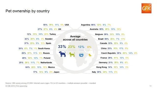 德國(guó)GfK集團(tuán)還做過(guò)一份精確到國(guó)家的數(shù)據(jù)調(diào)查,印證了這種洲際差異。這份調(diào)查顯示,美國(guó)、墨西哥、巴西、阿根廷等地,熱情洋溢的狗狗最受寵物飼養(yǎng)者的歡迎,而在俄羅斯、法國(guó)等地,貓超越狗成為養(yǎng)寵物的第一選擇。2021年由日本寵物食品協(xié)會(huì)進(jìn)行的調(diào)查發(fā)現(xiàn),養(yǎng)貓者的數(shù)量從2014年起已經(jīng)連續(xù)8年超過(guò)了養(yǎng)犬者的數(shù)量。特別是在新冠疫情下,養(yǎng)貓人群的增長(zhǎng)速度更快。