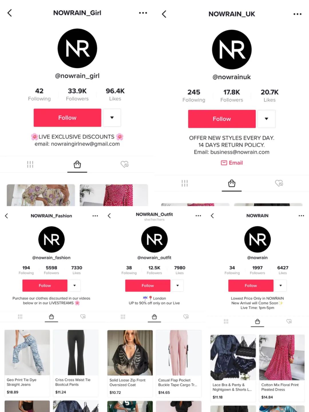 同時(shí),NOWRAIN正在TikTok搭建不同的賬號(hào),每個(gè)賬號(hào)打造不同的風(fēng)格,利用垂直風(fēng)格內(nèi)容來針對(duì)性的吸引用戶,目前NOWRAIN在TikTok上擁有5個(gè)賬號(hào)。